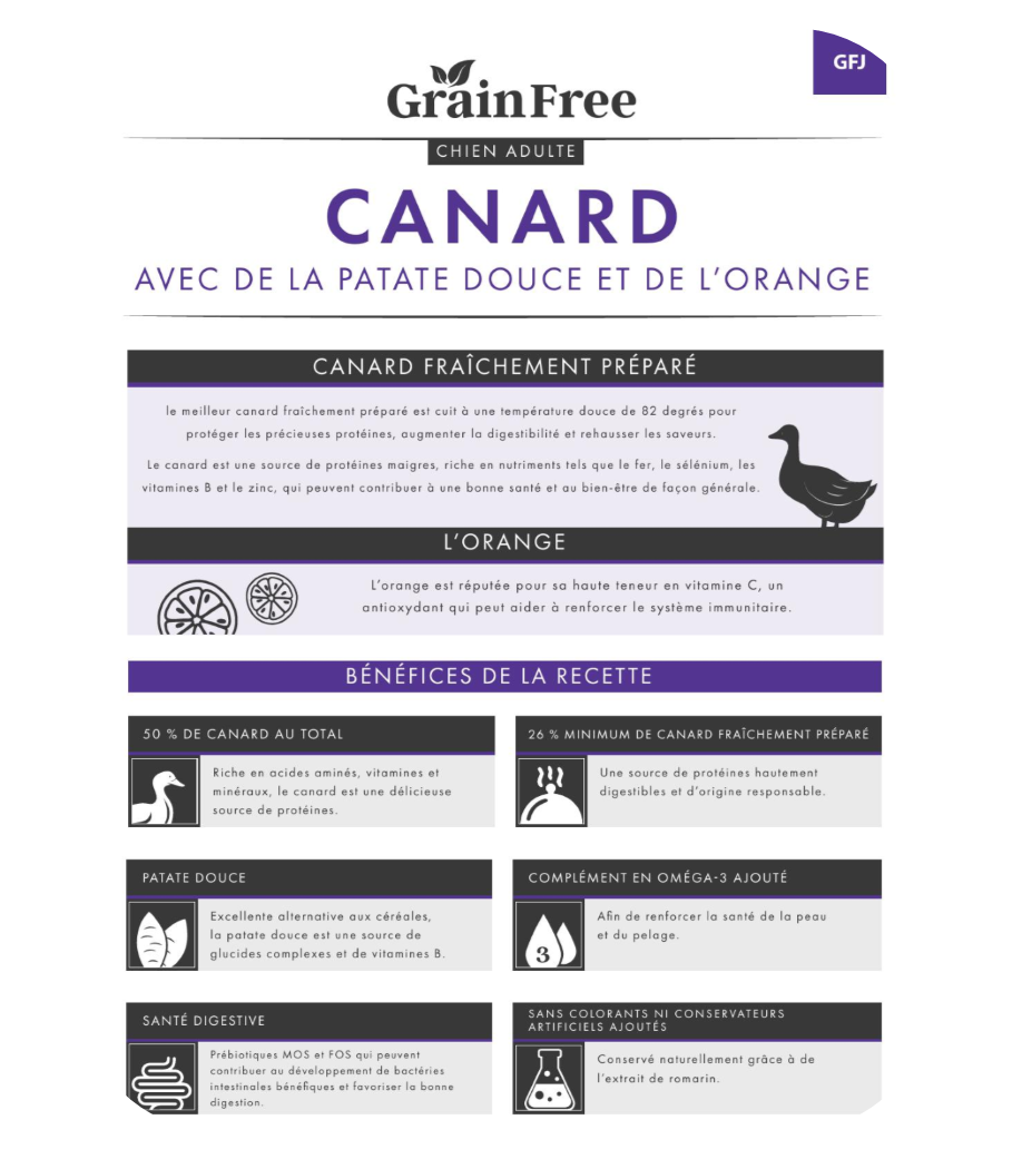 50% de canard au total pour contribuer à la santé et au bien-être de votre poilu